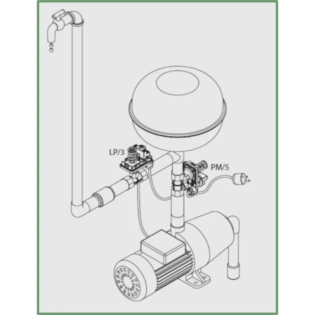 • Vo vodárenských systémoch je použitá séria s tlakovým spínačom PM/5 pre ochranu čerpadla/kompresora proti chodu na sucho.